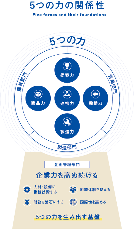 我々のビジョンを実現するためには、5つの力を強化することが必要であり、これが全社重点戦略です。